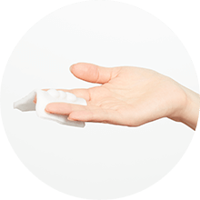 Wrap the pad around the middle finger of your dominant hand, gently holding it in place with your middle and ring fingers.