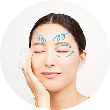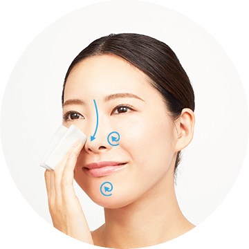 Use the pad to put the Balancing Milk across the forehead, cheeks, nose, and chin.
