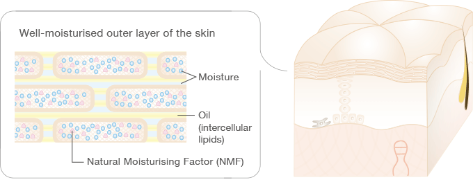 Skin with good moisture balance in the outer layer of the skin